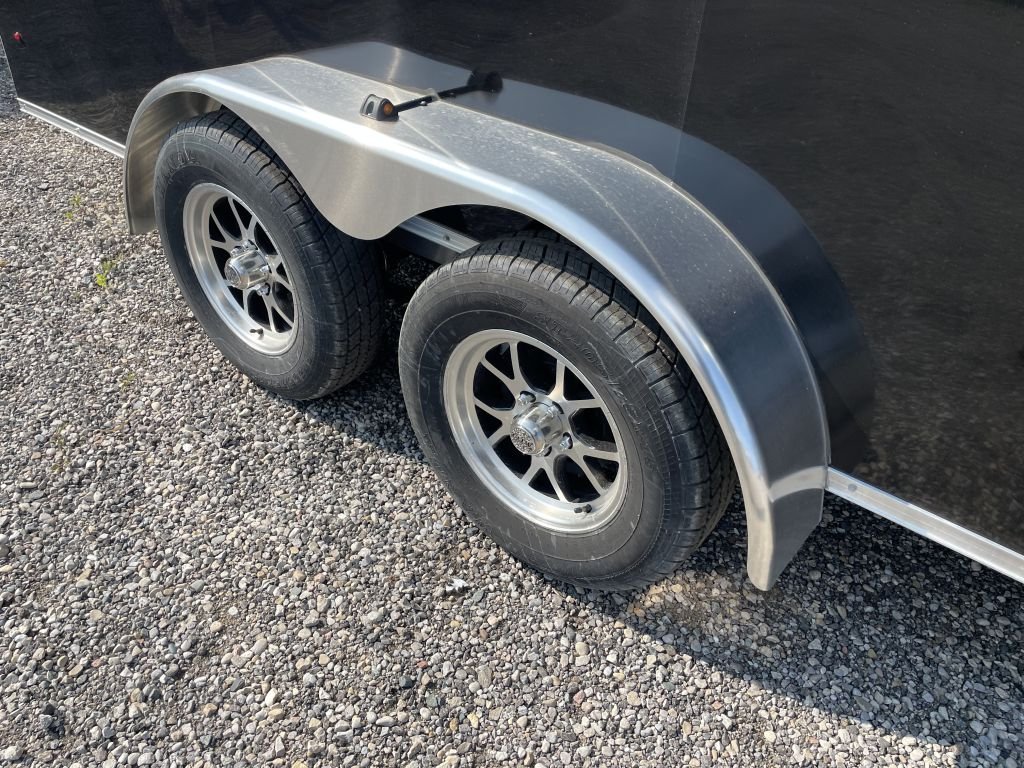 Weberlane enclosed / all alum cargo 7ft x 16 ft wedge nose 32 inches, side door , 16 inch side tube post c-c , 16inch floor cross, Tube floor cross 16 foot centere , Tandem 3500lbs, drop axles, 2 axle electric brakes , 205 / 15 x 5 bolt alum wheels , 2 5/16 ball coupler, jack , led lights , 4 inch trim level, 3/4 rainblock floor, 3/8 inch sides , alum 1 pc roof , screwless sides , 84 inch inside height